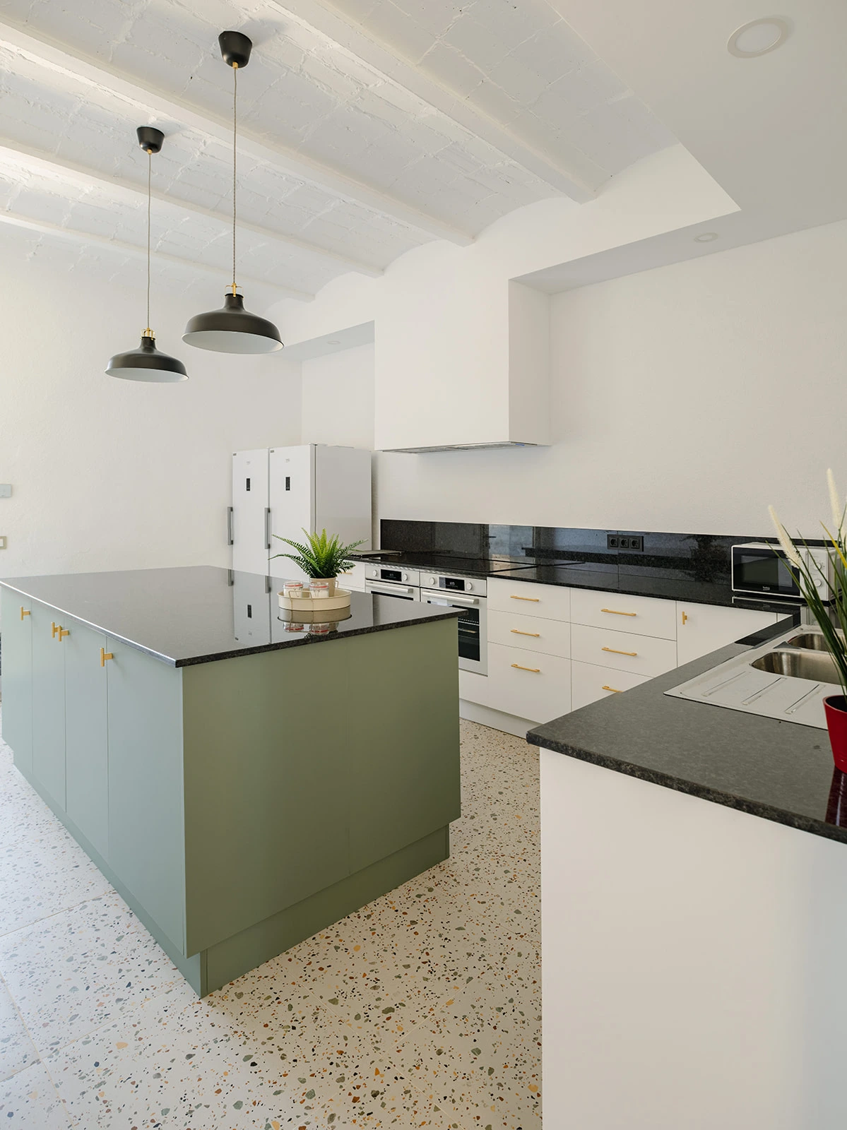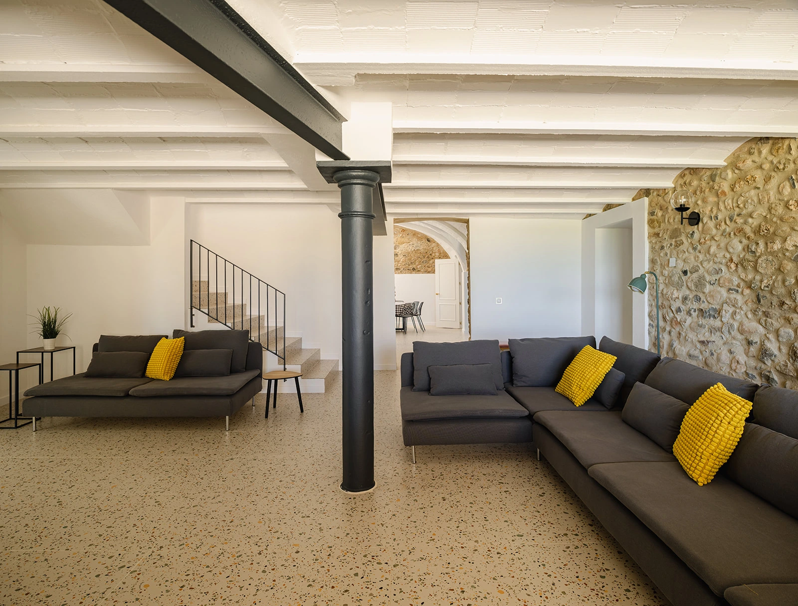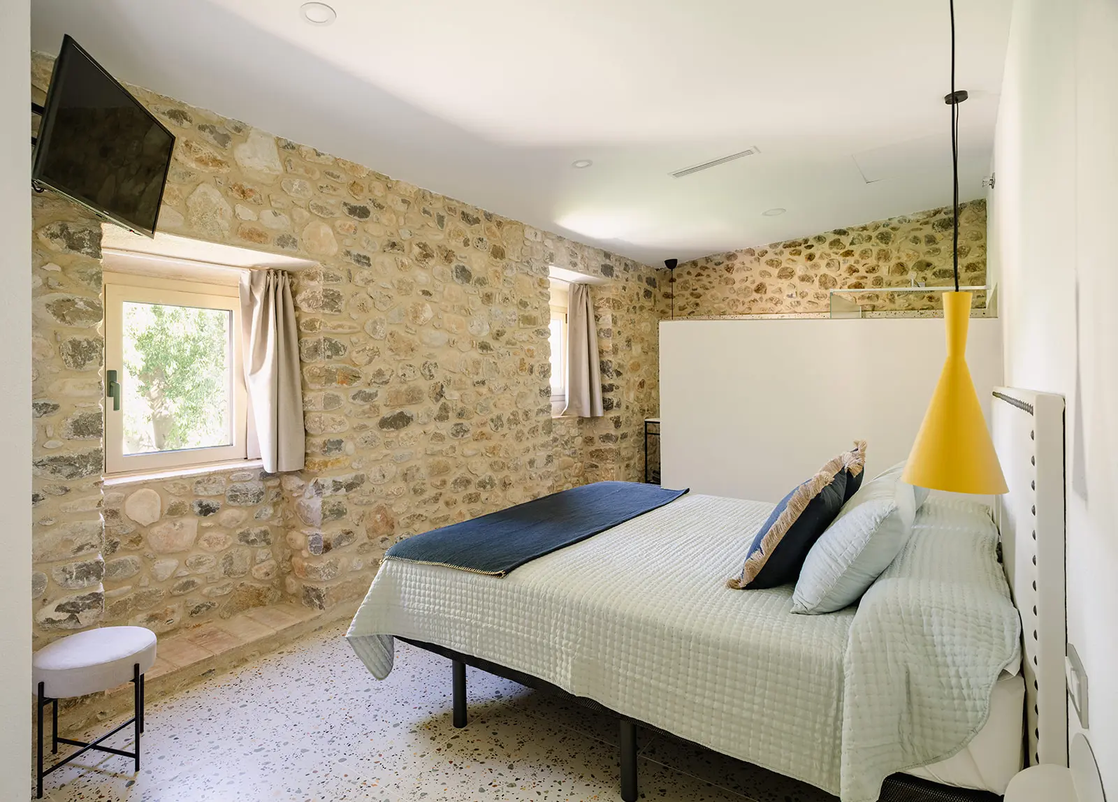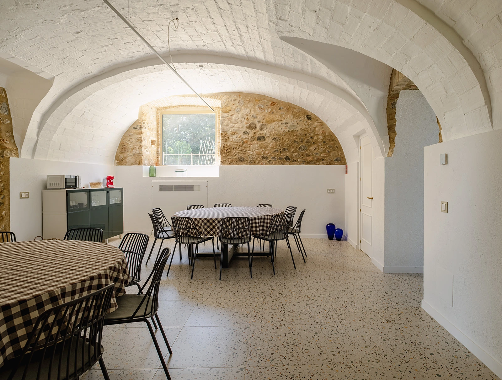 El proyecto apuesta por una rehabilitación respetuosa, donde la arquitectura original marca el ritmo. Los muros de piedra, las bóvedas, los arcos y las estructuras existentes se conservan y se ponen en valor. En el interior, los espacios se reorganizan para ganar amplitud, luz y funcionalidad, manteniendo siempre la lectura clara de la masía original.