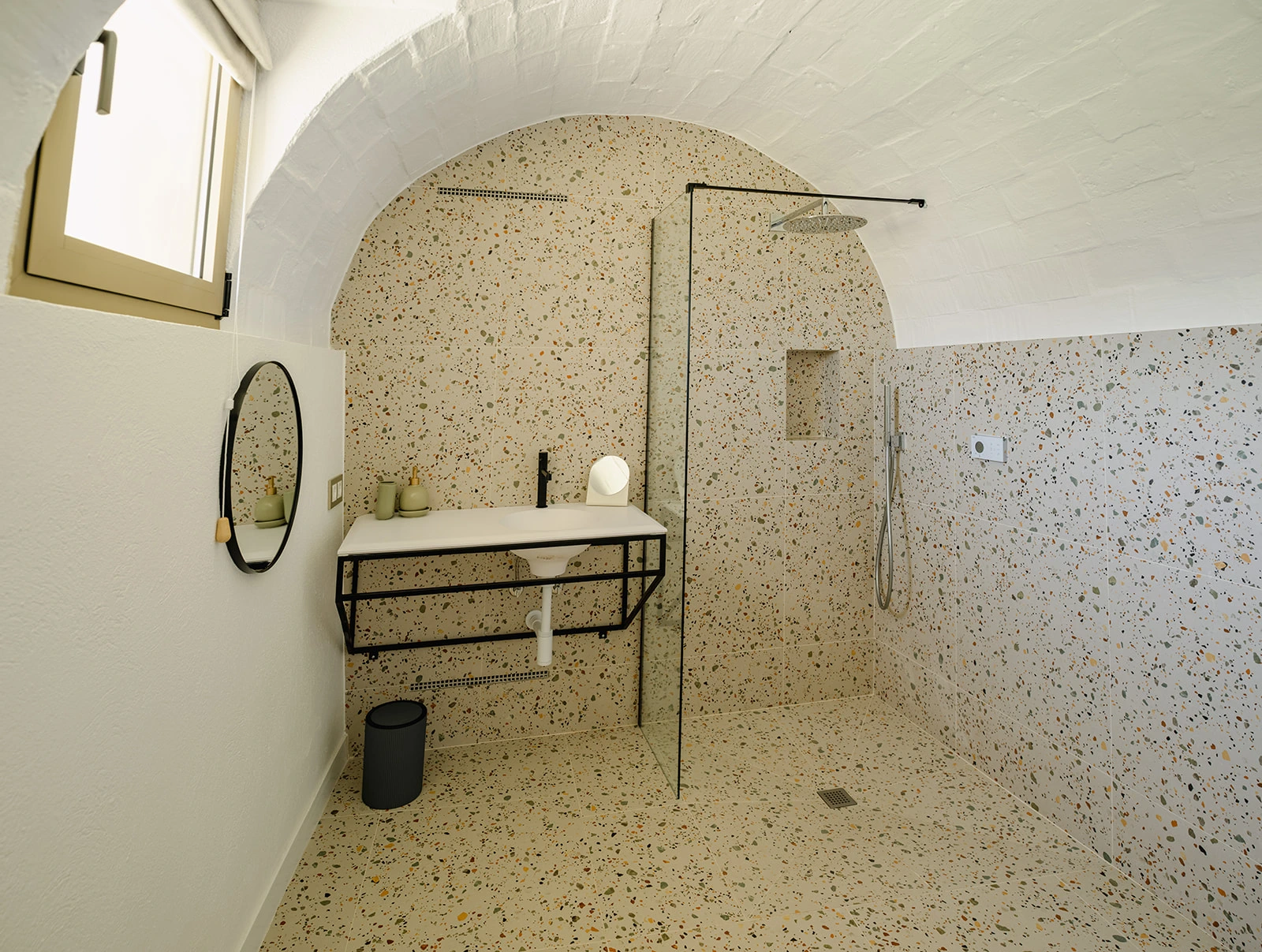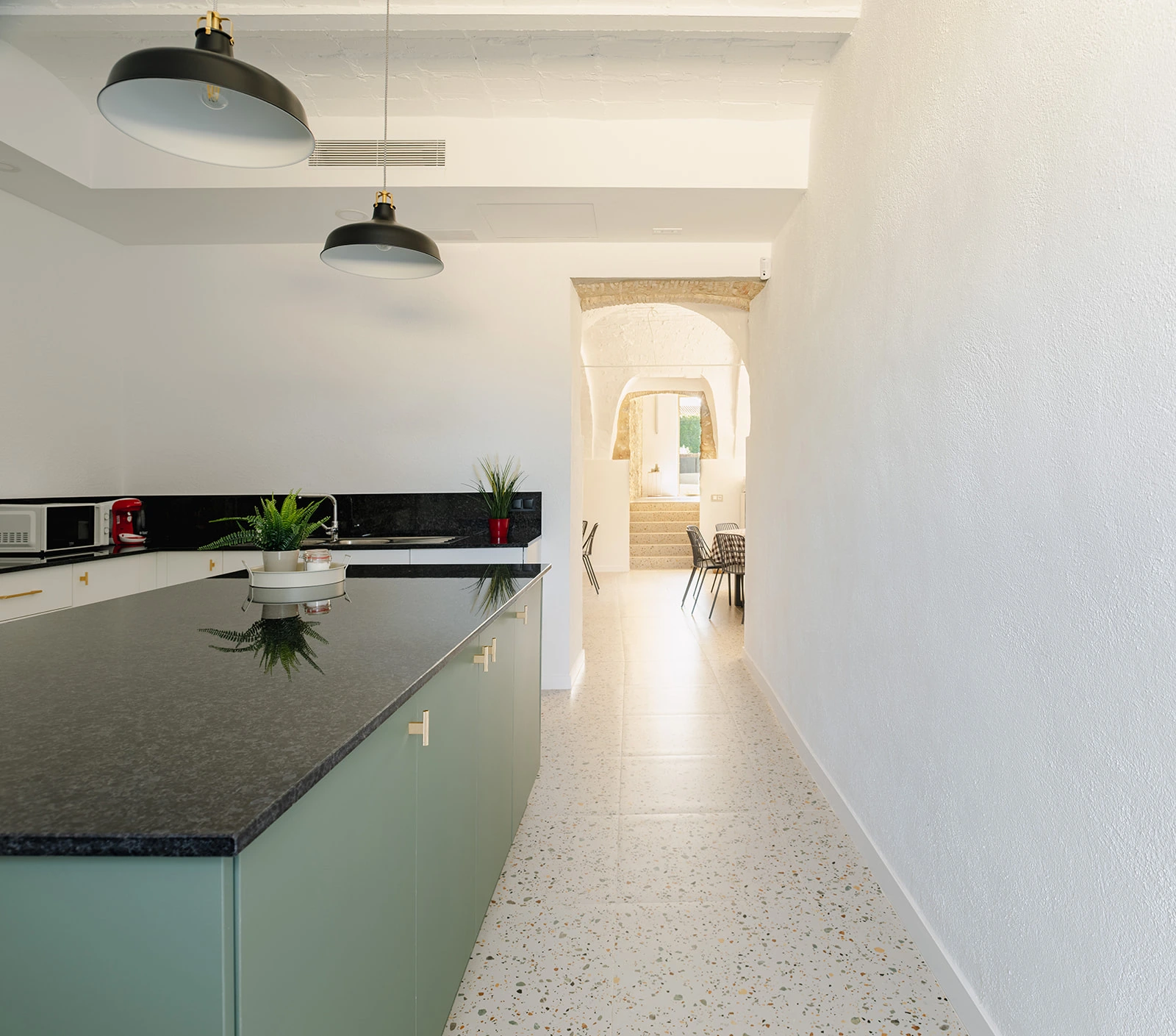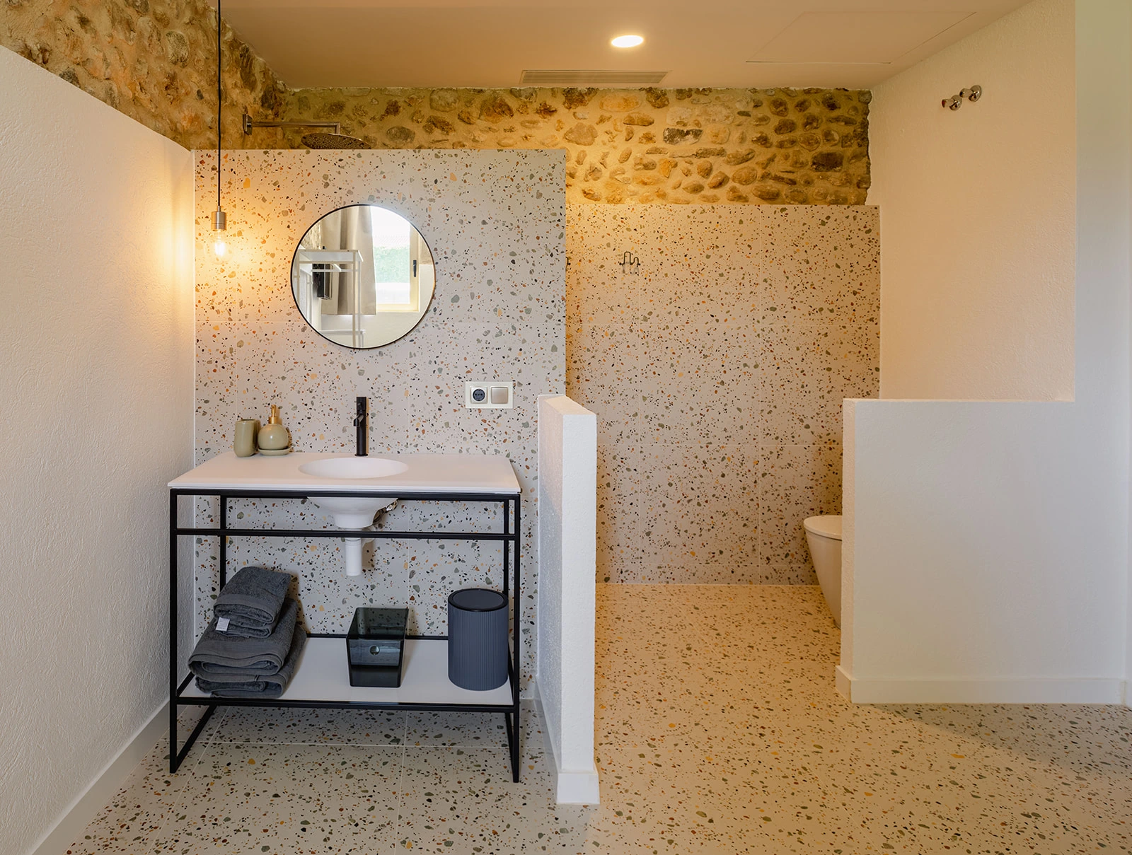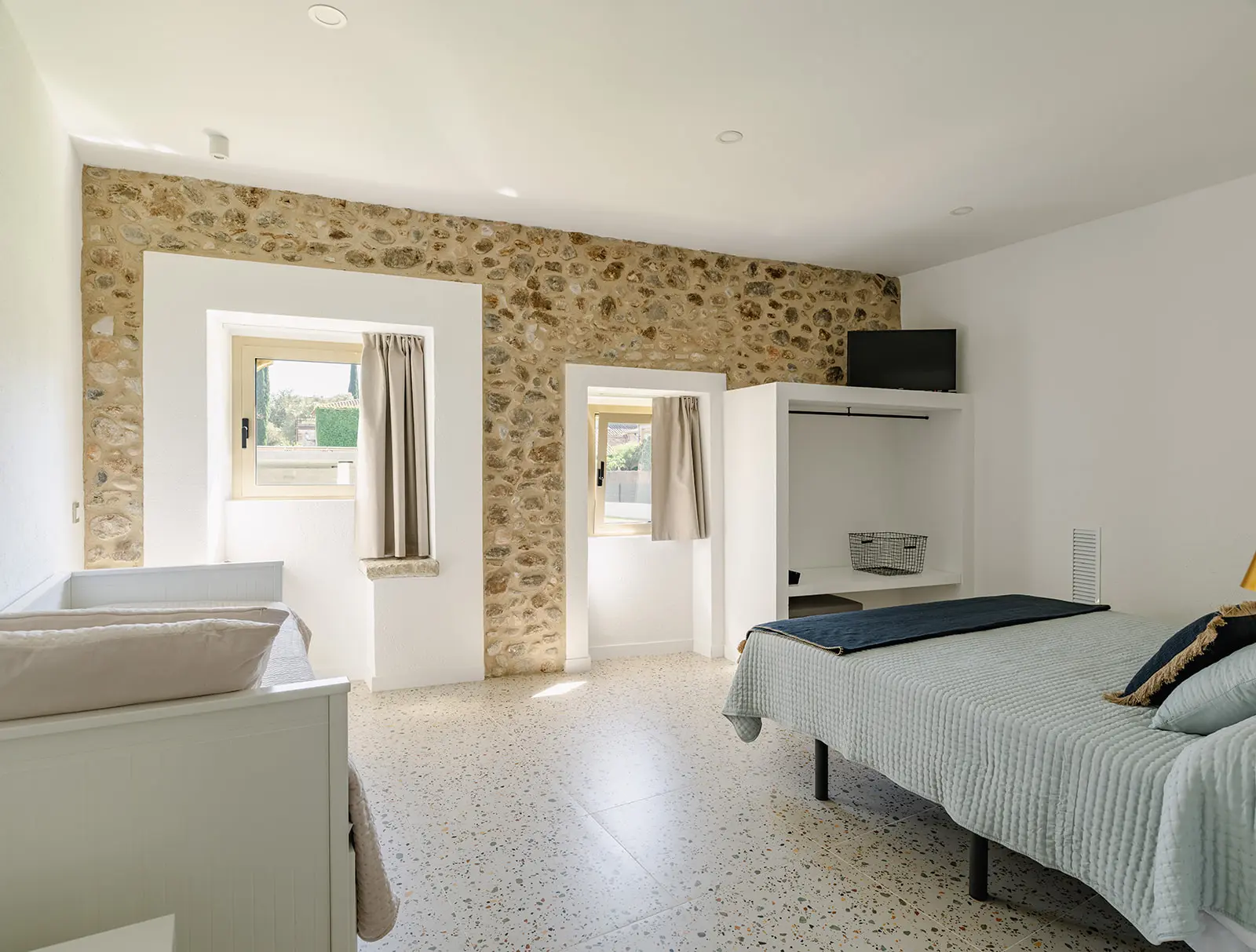 Las zonas comunes se conciben como espacios amplios y fluidos, pensados para la vida compartida y el encuentro, mientras que las habitaciones ofrecen ambientes tranquilos y luminosos, donde la arquitectura original aporta identidad y calma. Los baños, integrados con sensibilidad, combinan funcionalidad y materialidad contemporánea sin romper el equilibrio del conjunto.