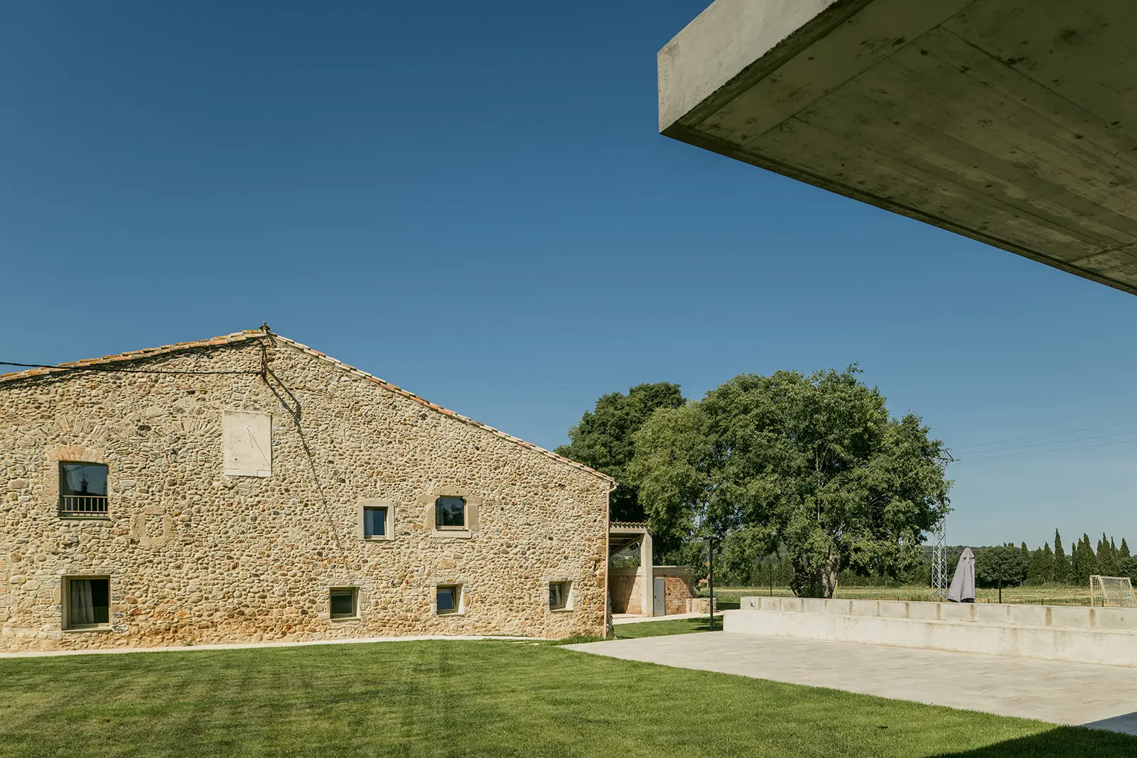 Situada en Parets d’Empordà, en el municipio de Vilademuls, la masía se concibe como un conjunto de gran capacidad —7 habitaciones y 8 baños, con alojamiento para hasta 20 personas— pensado para compartir, convivir y disfrutar del entorno rural desde una arquitectura honesta y atemporal.